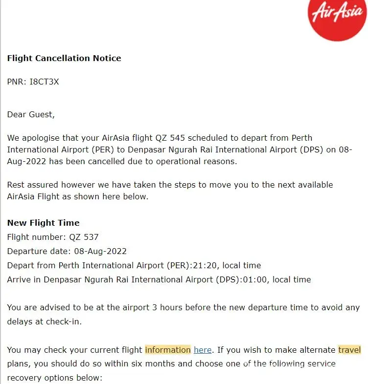 Initially the departure date was changed. Then just the time. Departure was 20 June bali Denpasar to Perth