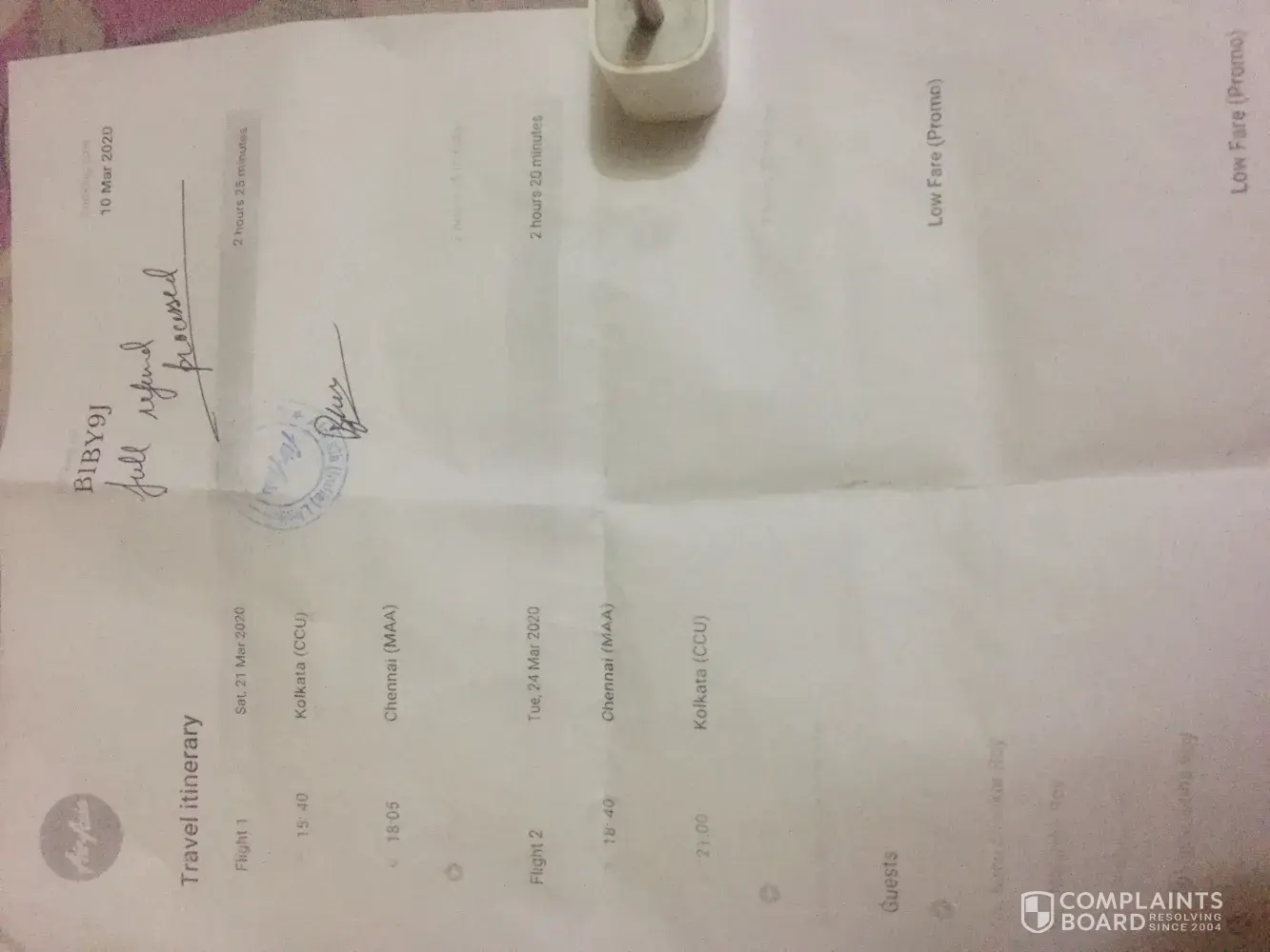 Subject: Kiron Shankar Roy (Booking No: B1BY9J) 21 Mar 2020 Kolkata ✈ Chennai - Travel Itinerary need refund settlement at the earliest.
