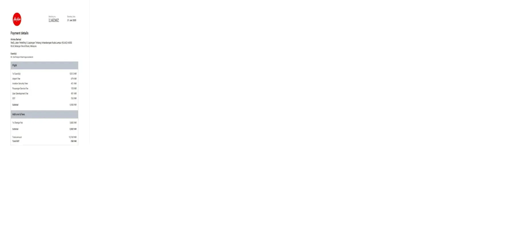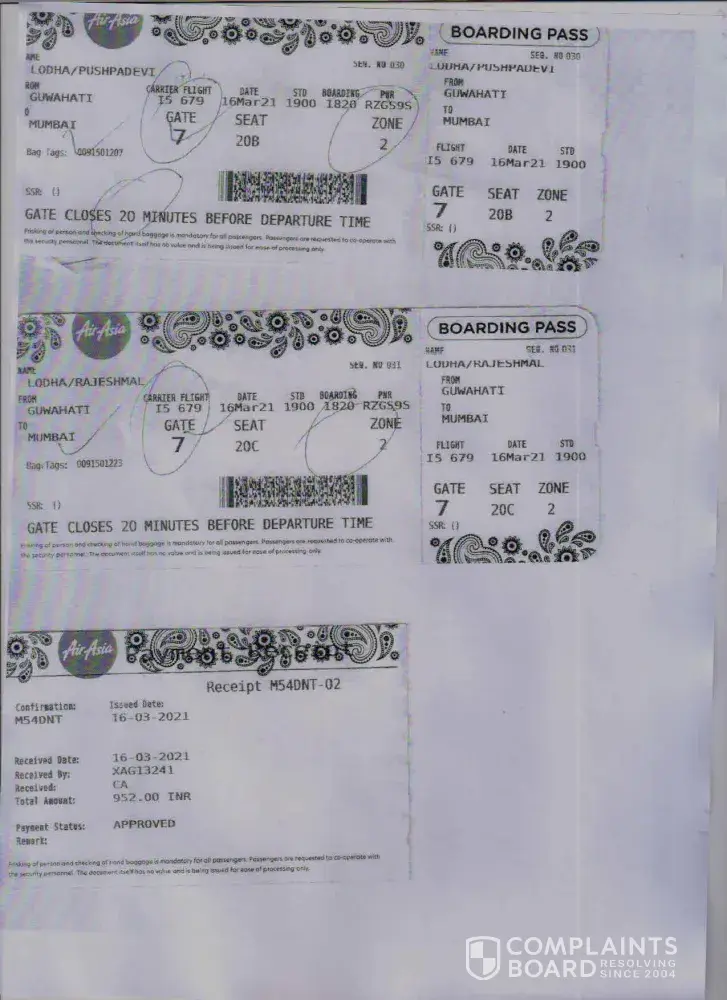 The Air Asia staff Ms. Baisakhi Ghosh also has given me the confirmation dully signed and stamped. Attached is the signed and stamped ticket from Ms. Baisakhi Ghosh for your reference.