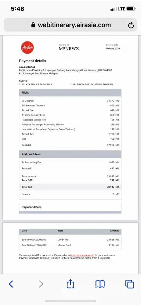 Hello Sir I have booked a ticket-with Airasia PNR Number is M2NRWZ Via my Airasia Big member account