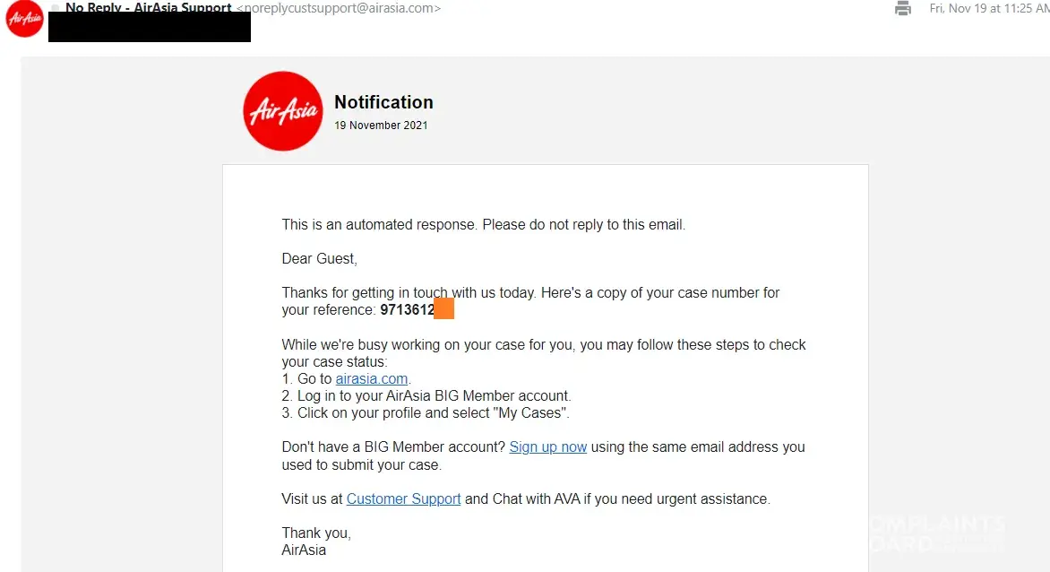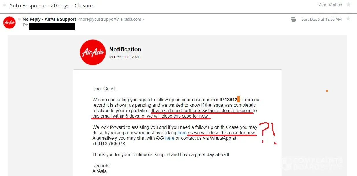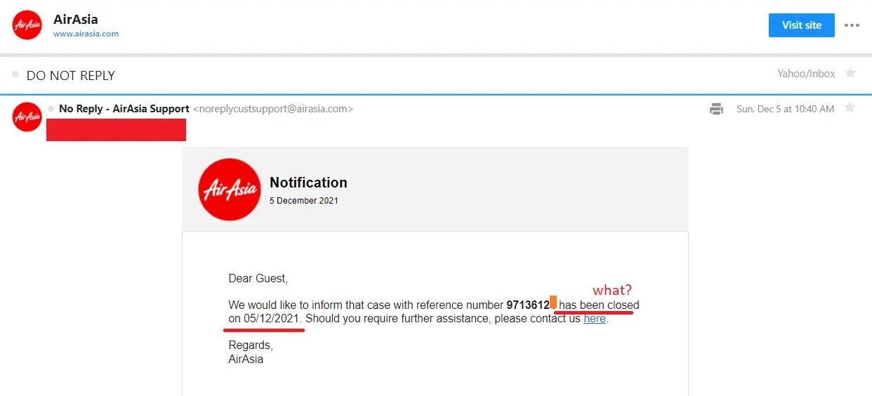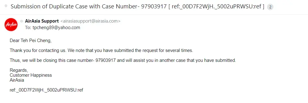 (3) their poor management. I've follow the rule to raise new case [protected]) through Airasia complaint system, however, they feedback that will contact us through another case [protected]), and will close the new case [protected]). There is no way that Airasia could contact us, since both the case has been closed.