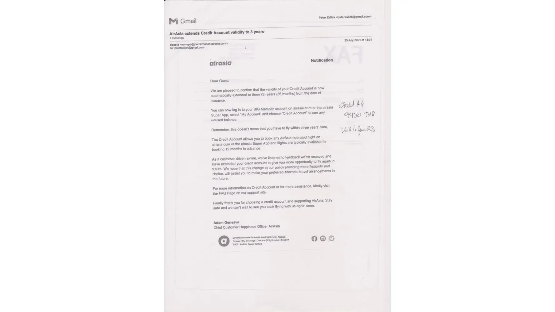 My Issue has been resolved by the Air Asia Team with my credit fully re-instated for a further 3 months only.