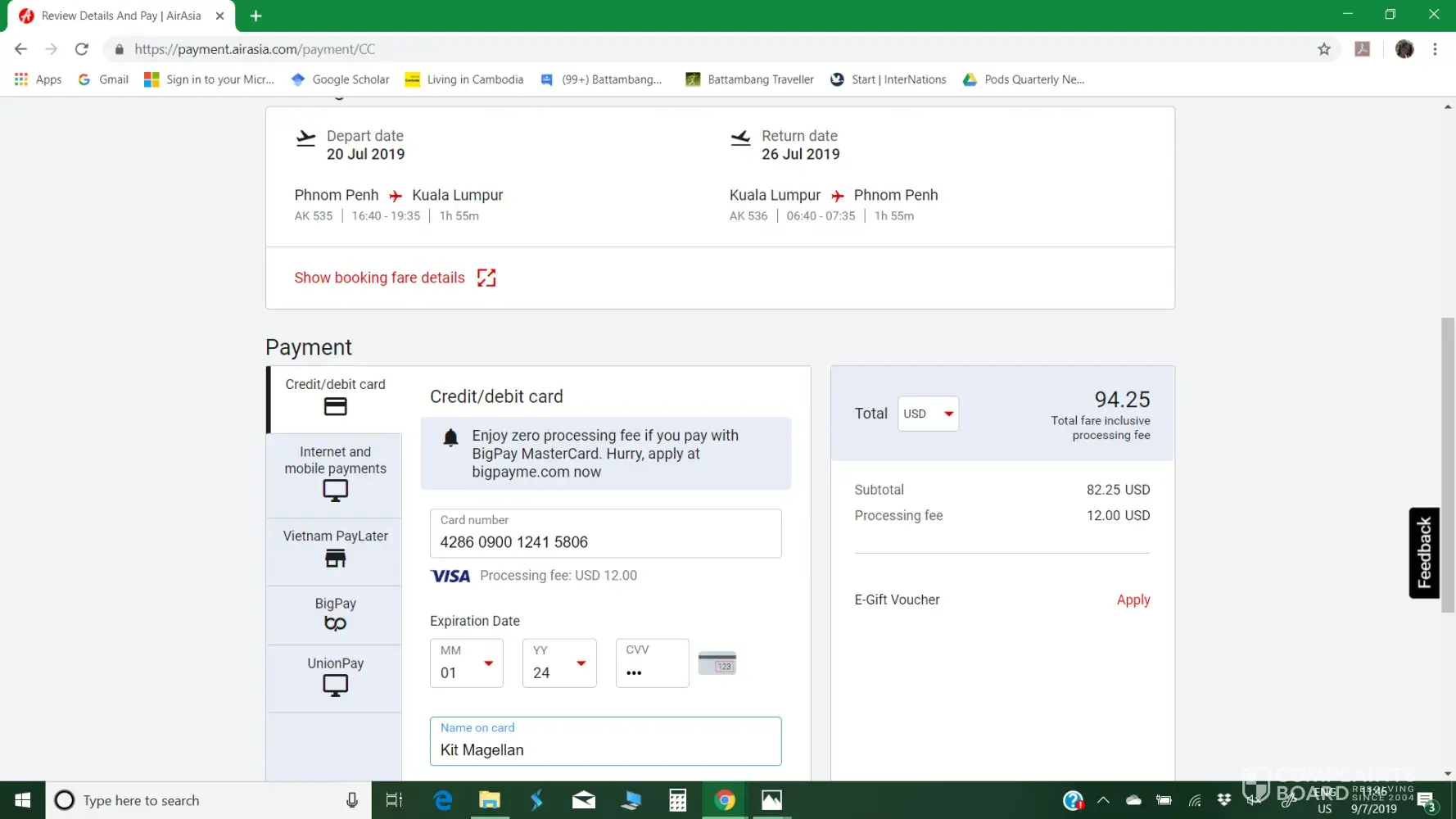 tart the booking, and this time I was charged a fee for exactly the same fl=
