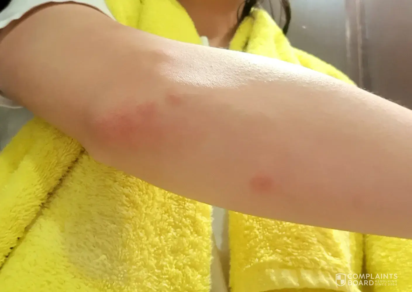 I took flights AK1727 (seat no.30B) on Monday 8 July from Penang to Singapore. After I touched down, I noticed my arms and neck had a cluster of bug bites. As it was a return trip to Singapore, these bites could not have come from anywhere apart from the plane.