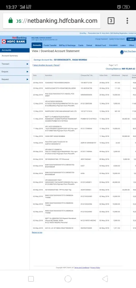 Cost of these two tickets was Rs.18500/-. Bank statement is attached for your kind reference.