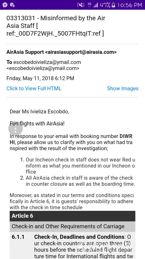 On Tuesday, April 3, 2018 12:51 AM, AirAsia Support wrote: