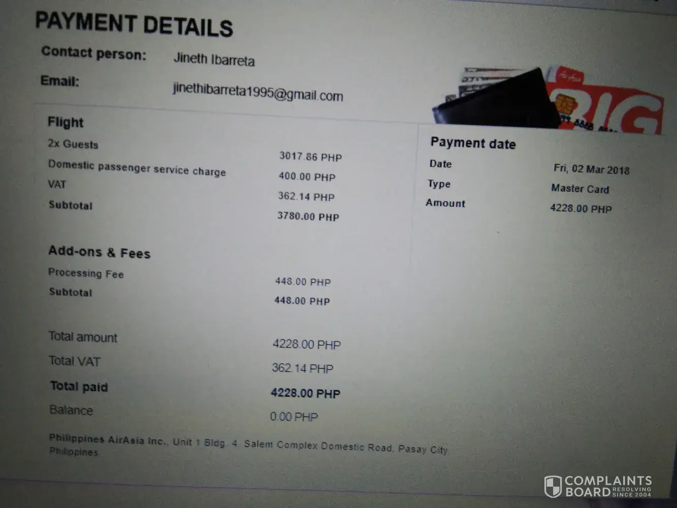 Because of no fault of mine, I have to buy another new ticket to Penang AK 6136 which cost me RM561.60 with my Australian Master card.