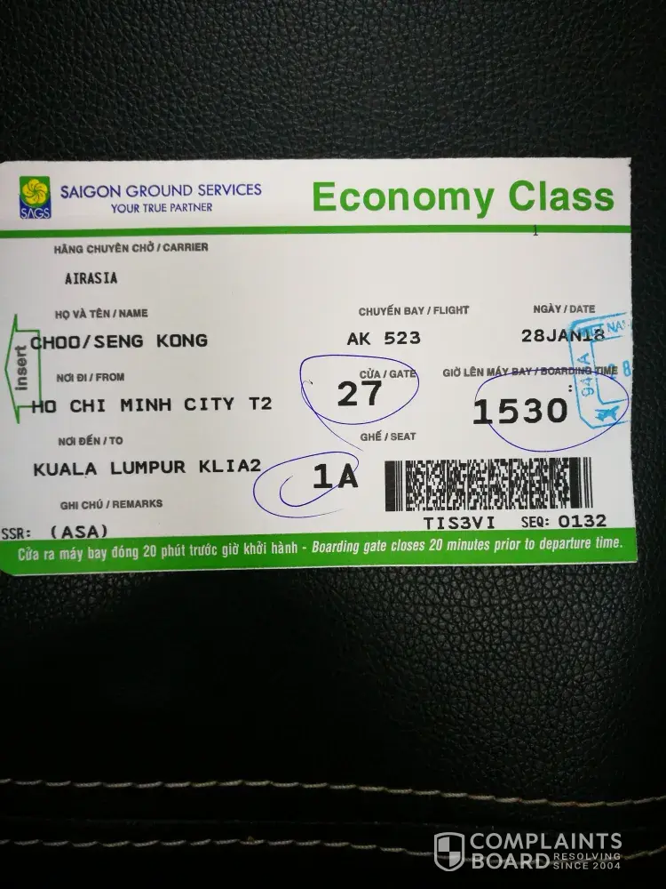 My name is choo seng kong. I was on flight ak523 from ho chi minh to klia 2 at 430pm on 28/1/2018.