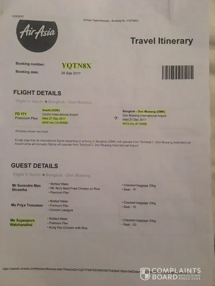 I'm asking Air Asia for investigation into my case thoroughly and very looking forward to hearing the outcome.