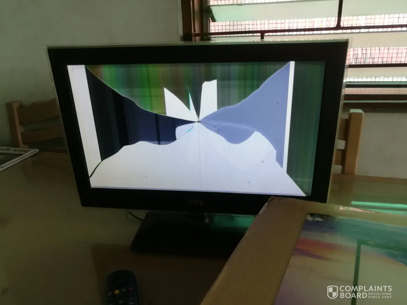 Upon arrival at the airport, I did not noticed anything wrong with the monitor's box so I assumed that there was no damage whatsoever, only until I opened it earlier this day and turned the tv on that the lcd monitor was damaged, as if a luggage or a heavy thing had fallen right at the middle of the screen. Attached below are pictures as proof of my complaint. I hope you take action on this as soon as possible.