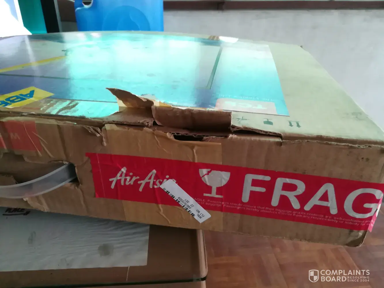 Another bag (blue in colour), there was also damage at the handle part as well as some part of the bags also having damages in the form of broken. we just don't understand how all these can happen. both the bags cannot be used anymore. is a total loss and I want air asia to bear all the cost of the damages!