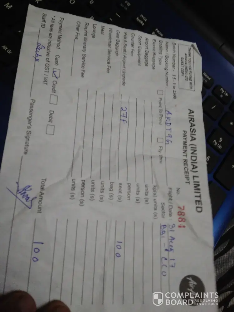 I shivanshi jaiswal boarded in a flight 15 536 from Bhubneshwer to Kolkata on 31st Aug, 2017 and at the time of taking boarding pass the attendant asked me to pay Rs 100 for window seat which I paid but didn't got back the service for that Rs 100. As I returned from bhubneshwer to Kolkata in seat No. 27F which was not a window seat.
