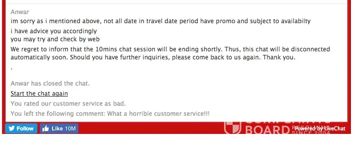 I have submitted e-form 3 times and went on live chat (each time waited for about an hour just to get connected) for more than 5 times. After a week, there is still no reply from Air Asia. In fact, I was told that they had closed my case without even clarify with me. I waited as being told but there is no feedback or reply for my request for refund or proceed with the booking. One of the conversation was abruptly terminated because of the 10 minutes time frame. This is so unacceptable and rude.