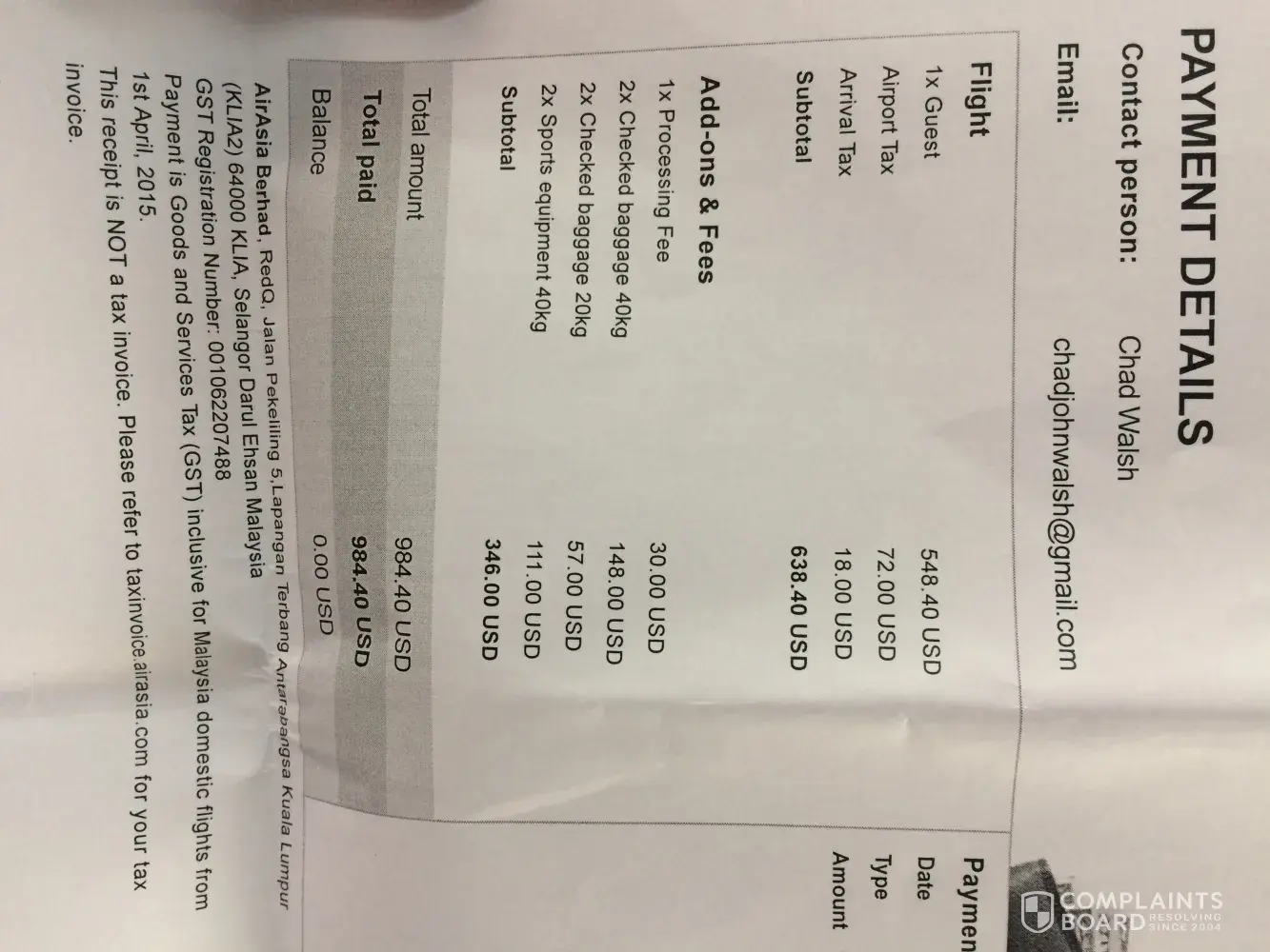 I wish that you formally raise these matters to Air Asia's senior management of the misinformation regarding their services. I also continue to wish for the full refund of the entire RM9, 354.55 upgrade fee.