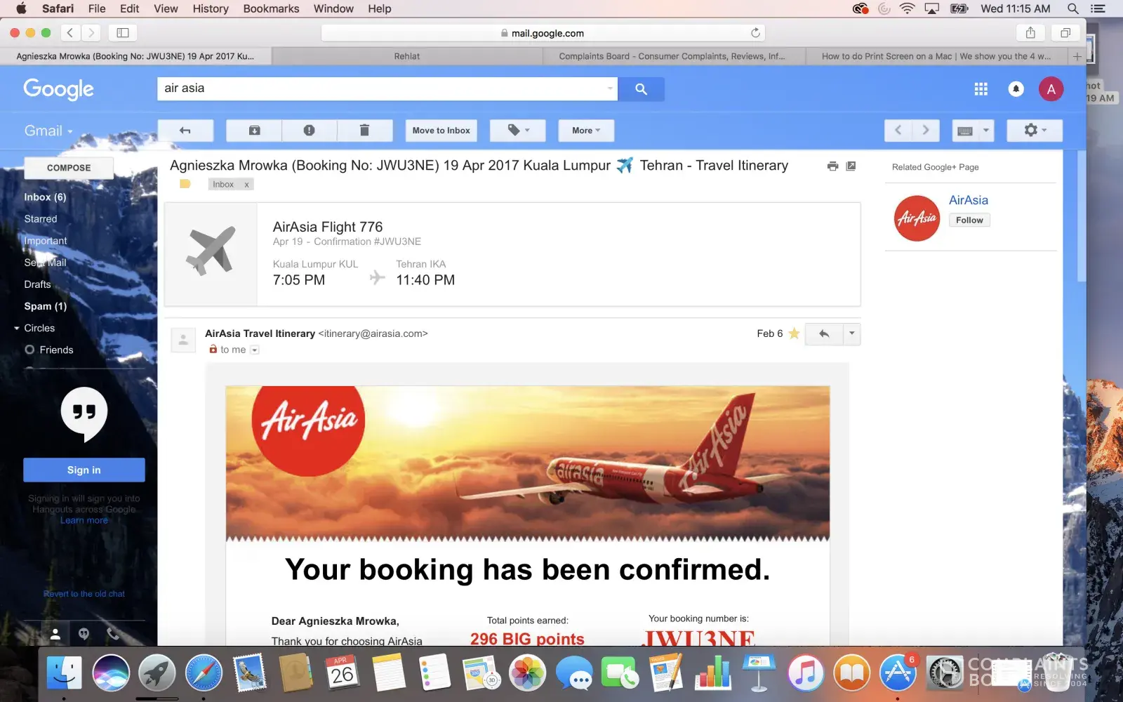 5. Making an attempt to file a complaint through Air Asia web site, impossible to submit, error message pops up every time.