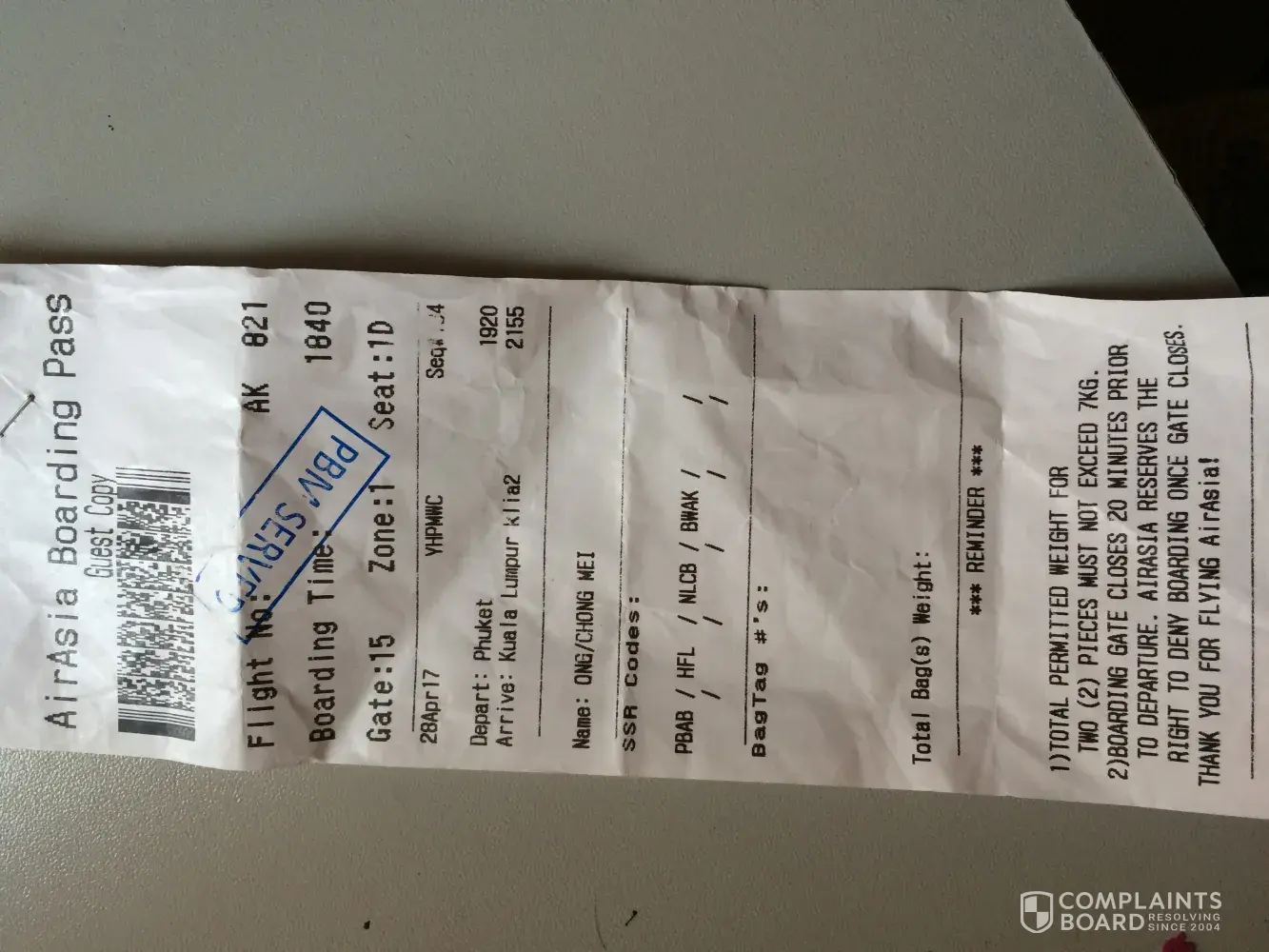 Jadi adik saya dengan panik pergi ke mesin self check in dan cuba untuk print tiket yang dimaksudkan oleh polis bantuan yang tidak boleh diterima pengetahuannya. Selepas gagal untuk print tiket di mesin, adik saya terpaksa beratur dan menunggu untuk ke kaunter dan malangnya apabila tiba gilirannya, pegawai airasia dengan mudah menjawab "encik sudah lambat perlu beli tiket lain". Sedangkan waktu itu kapal terbang belum lagi berlepas dan masih ada 30minit. Amatlah tidak diterima dan tidak boleh difikir bagaimana pendedahan ilmu yang pihak airasia berikan pada polis bantuan dan pekerja. Tidak dapat sebarang bagasi yang perlu di masuk ke ruang kargo. Hanyalah bagasi kecil yang dibawa untuk dibawa naik ke kapal.