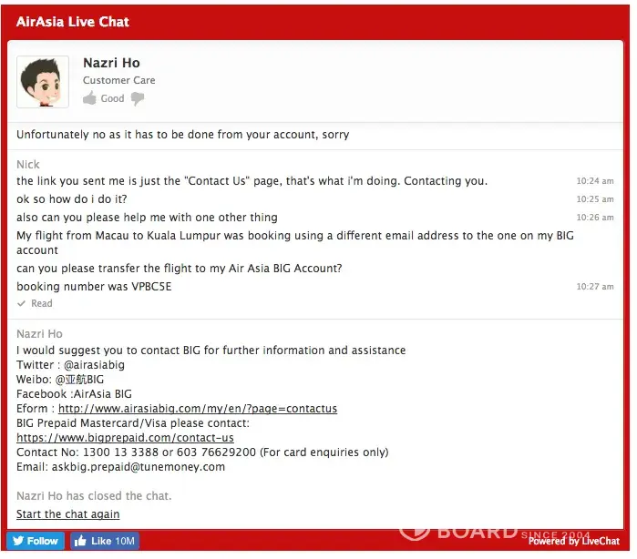 customer service in the airasia live chat service
