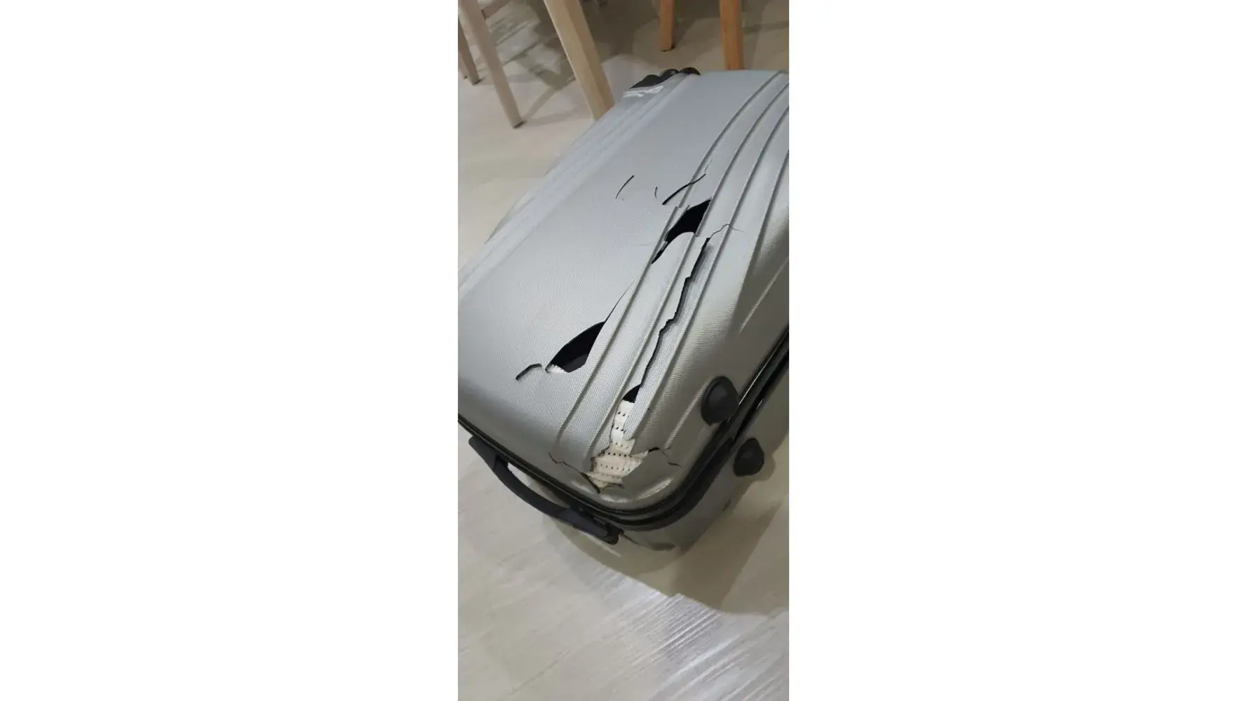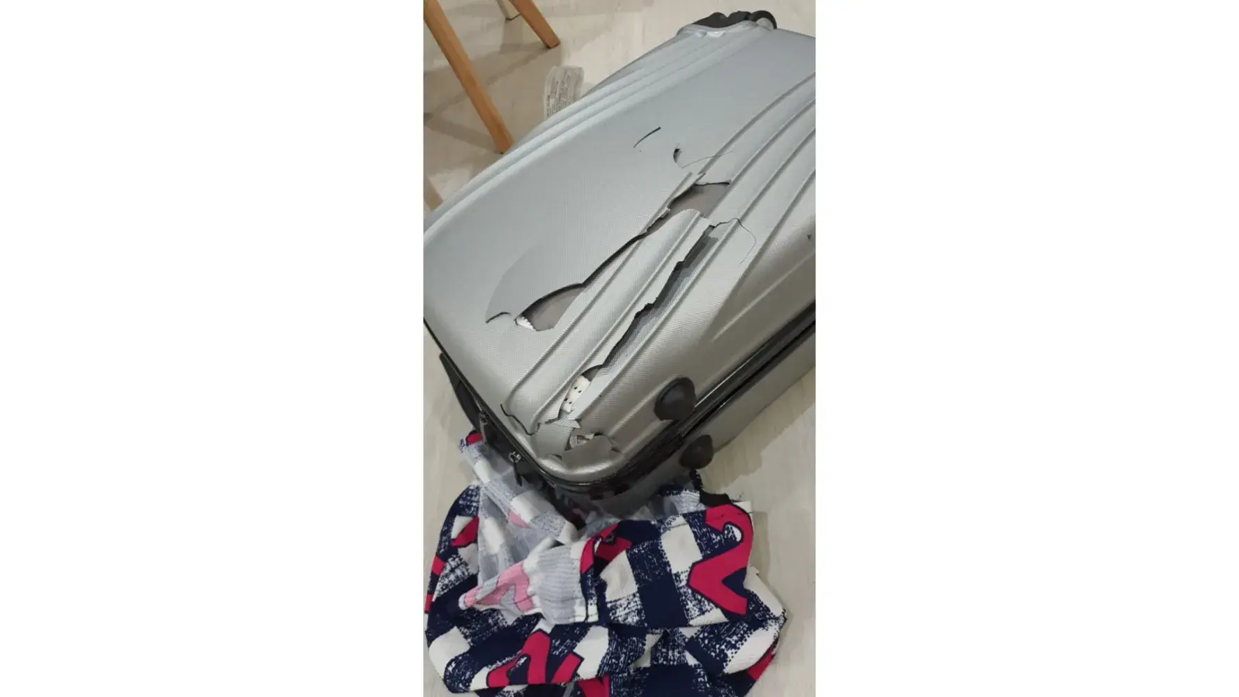 Enclosed herewith the photo to proved the damage luggage.