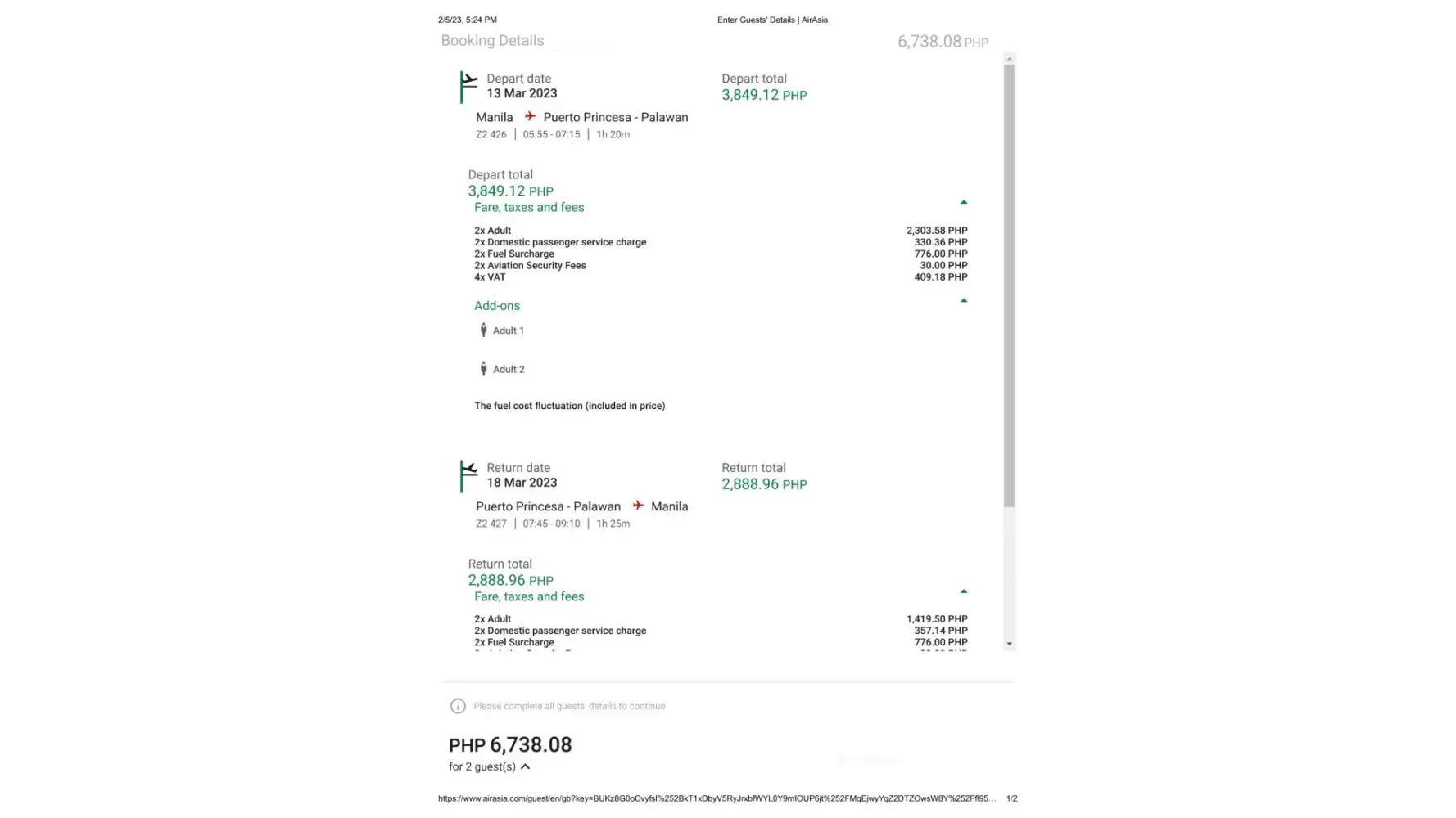 I booked a flight for my Lola going to Puerto Prinsesa worth P 10,694.68 for two people. I tried changing the date to March 13-18 instead of Feb 13-18 and their online site is asking for additional of P 4,409.60 on top of the first payment I already made.