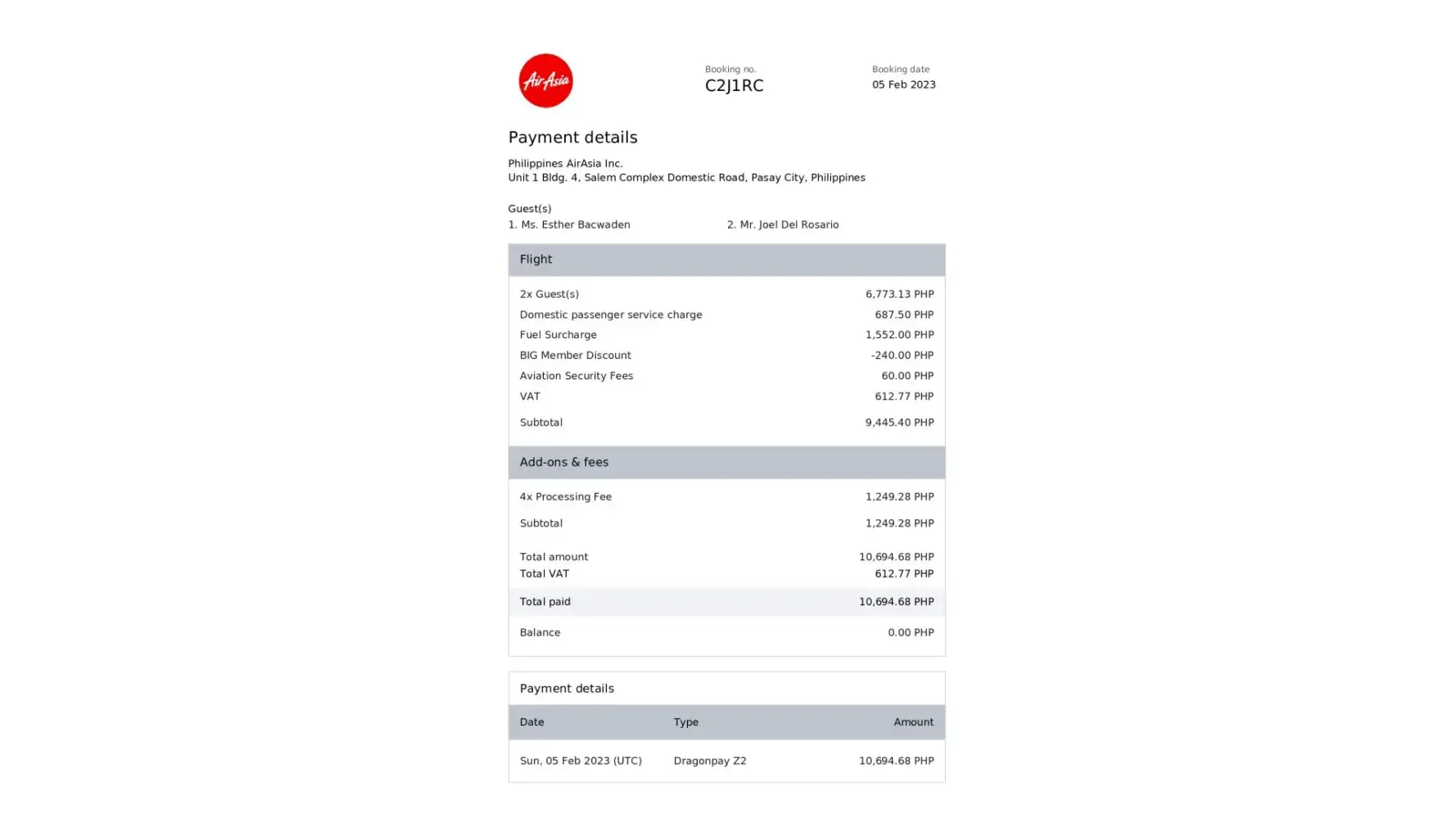 I am still waiting for my refund for the cancelled flights of December 12, 2022, AirAsia Flight Z2 911 for CGY to CRK; and December 16, 2022 AirAsia Flight Z2 912 for CRK to CGY. These flights were cancelled on November 26, 2022, and I was informed via email and text message. Two (2) passengers were booked on these flights -- myself and my wife Deborah Corpus.