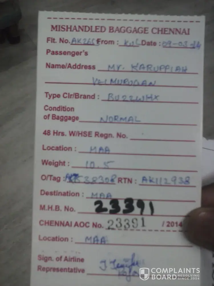 I flew from Bangkok to chennai on 07.03.2014, Once I reached chennai have not received my luggage after the enquiry came to know that air asia has mishandled my luggage. But two days later received my luggage, due to their mistake i have lost almost Rs-20, 000. Air asia has not given any reimbursement not even proper response. I would strongly recommend not to travel in air asia if yo do you or your luggage are not safe. They ruined my life please no one travel on air asia they ever handle the luggage properly.