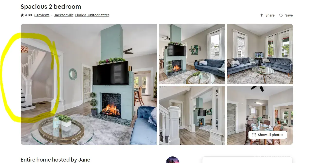 To begin - Airbnb nor the host would help get me any kind of refund for my 1 night stay that costed me 3k+ in Jacksonville. I picked up my mom who is elderly and I haven't seen in awhile - her health isn't the best she had a broken hip a few years back and now walks with a cane. Having said that I told her I booked a place where we can spend the new year for a bit. When we got to the property we quickly realized she actually had troubles getting to the front door due to the steps and could not go up the stairs once in the home to use the facilities - shower or any bedrooms. I explained to this host Jane this would be a problem - she did not want to refund me any money - we ended up leaving Jan 1 - checked in dec 31. There is no way I can leave my mom in a home for 15 nights without bathing and or sleeping in a bed I paid 3k for the accommodations. I asked airbnb to help refund me something they were not helpful - the host was not helpful either - had no concern for the welfare of my mom and the issue and just took my money. This is a safety concern I had! What if my mom fell - who is liable... I am seeking assistance from anyone who can direct me for more help - I do not recommend renting this property for many reasons.