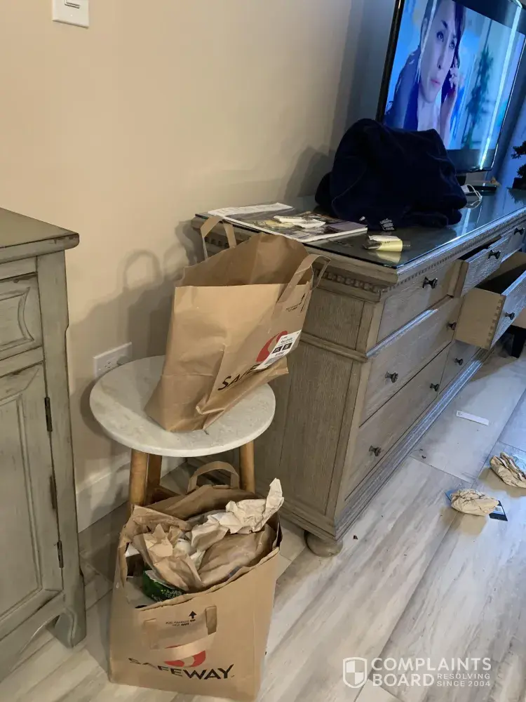 How much faster can one file the complaint? I was quick to gather photos of the damage, scheduling a plumber and housekeeping to do a deep clean and in addition we had to hire a company to come in with an Ozone machine to remove the cigar stench from my home. It still lingers today!
