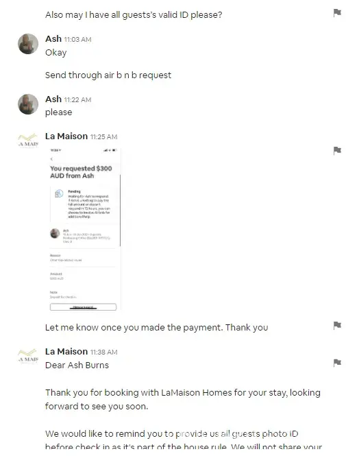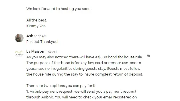 Hi Ash, Thank you so much for reaching out to Airbnb. This is Edlyn, one of Airbnb's support Ambassadors. How are you? Apologies for the delay in getting back to you. We are currently experiencing an unusually high volume of requests, so your case has been just forwarded to me now. I tried calling you, but I was only greeted by your voicemail.