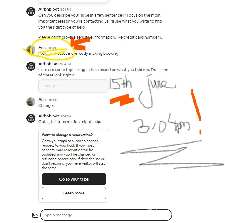 Well I have been stressing about this and I have been trying to contact Airbnb ever since and they have been very difficult to get a hold of and even more difficult in returning a call when they say that they're going to call me back very soon and give me an answer I have been very very upset and concerned that I may have lost over $500 With making this reservation with incorrect dates. I immediately contacted host As soon as I was aware of the error which was within approximately half an hour with my apologies and a request to have my error rectified and the reservation booking amended to the correct dates, I'm very upset to have it Denied now twice Now as I am a constant user of Airbnb and the lack of communication I have received from host and also Airbnb has upset me and also makes me doubt using the company now from here on in I am unsure what to do from here I am still waiting patiently for Airbnb I returned the phone call and spoke to 2 people and was transferred to a different department again and then suddenly while waiting on hold, the phone line connection cut out, i'm still patiently waiting for Airbnb to contact me once again.