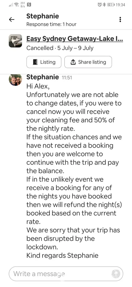 I am taking the time to write you directly about my personal experience with Airbnb last year. I am disappointed and upset over the thought that I have had to deal with a chargeback from your company for a cancellation I made last year due to covid19 restrictions. Although I believe that I tried going through the right channels to resolve my dispute. I know I shouldn't have been charged back my deposit fourteen months later.
