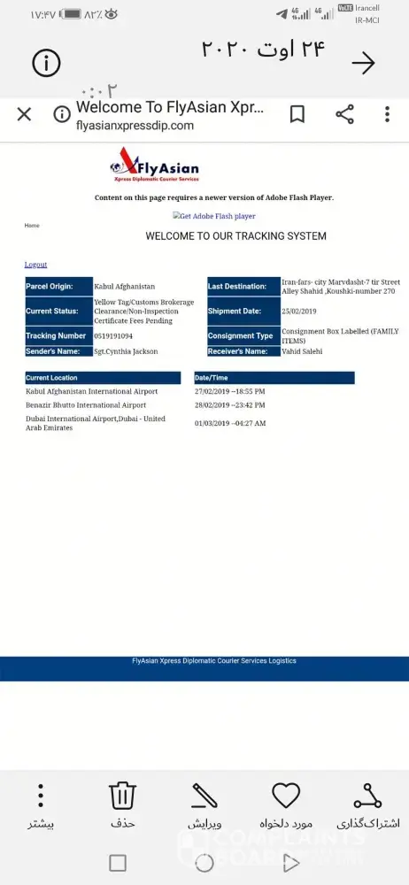 Hello, dear. I paid $1,360 for the postage, unfortunately the amount has been paid, but it's in a pending mode and the shipment wasn't sent to my address, I'm complaining and I want damages. About three years have passed since my payment date, and I corresponded to every agency that existed and I didn't get answers, the cost of traveling from Iran to the UAE is about $7, 000, which I don't have anyone to answer to today.