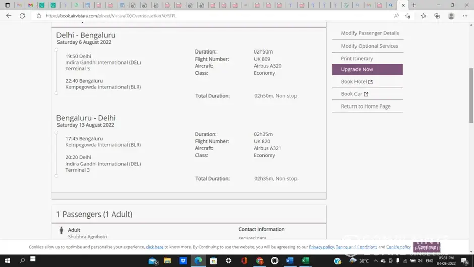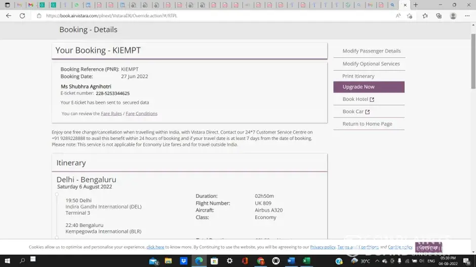 Dear Complient officer, This is to inform you that, my Vistara booked ticket from Delhi to Bangalore on 6th August 2022 also Return ticket booked from Bangalore to Delhi on 13th August 2022 is confirmed. But unfortunately, I have been sick with flu, a bad cough, cold, throat infarction, and a runny nose as a consequence, and today, the doctor advised me...