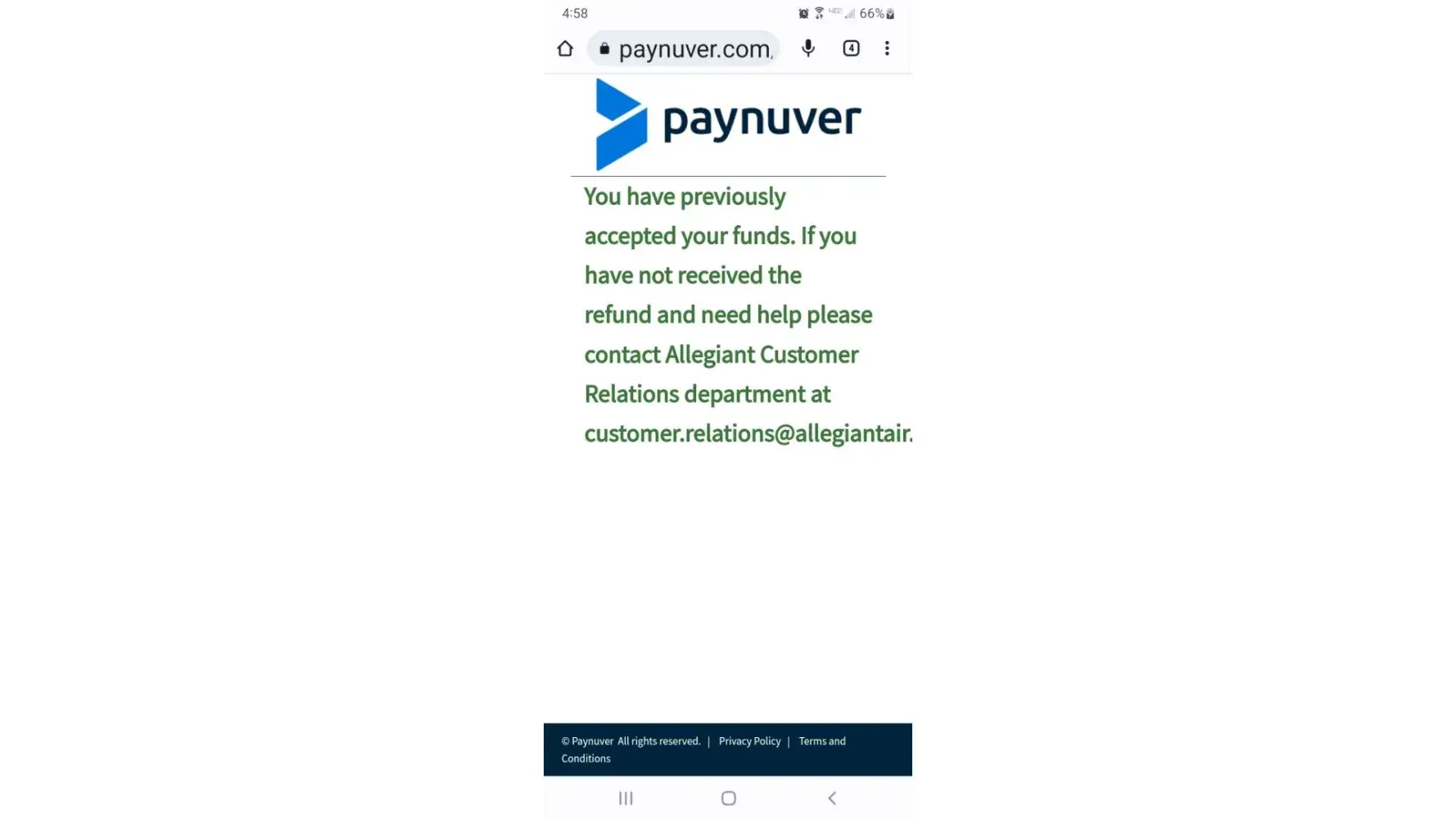 My Allegiant flight 1539 #CMBH2H was delayed Friday, May 12, 2023 until Saturday, May 13. 2023 8:00am. I was sent an active link to Paynuver for a $250.00 to respond within 48 hours. I promptly responded, & chose a Paynuver Virtual Mastercard. It gave me the card number, CVV, and expiration date. Tried to activate the card, I was told my virtual card #...