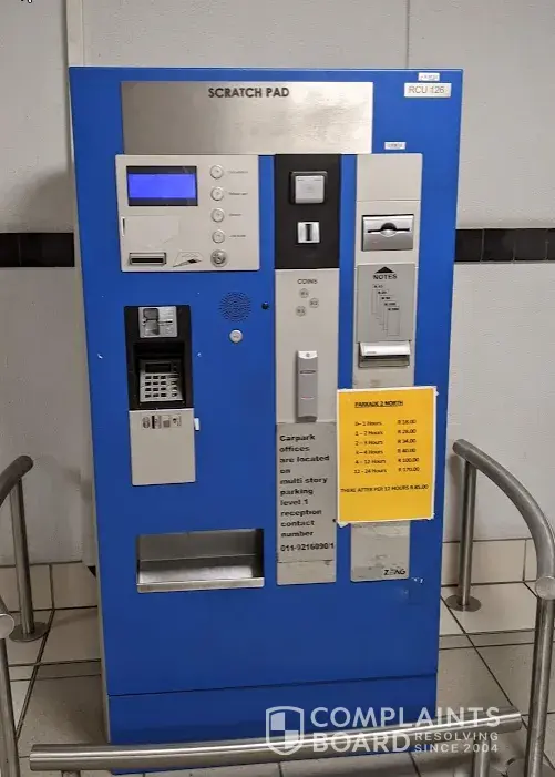 Arrived off of Cape Town flight, to collect vehicle at approx. 22:30. Security Guard assisted me to find vehicle then showed me two parking pay points in central stair case at Basement level. He witnessed both machines not working after I inserted my credit card and also attempted a tap function. He then showed me to the parking office where I maned to pay at the pay point in the office. On the way to the office, we met another person who also encountered a faulty pay point. I have received email alerts that I have been charged three amounts of R 510-00. I did not enter a pin at the two faulty pay points.