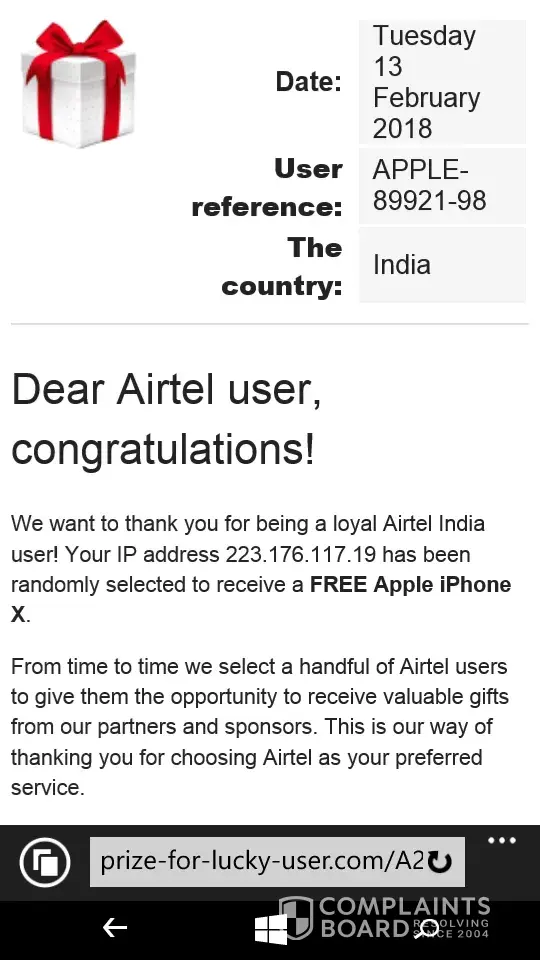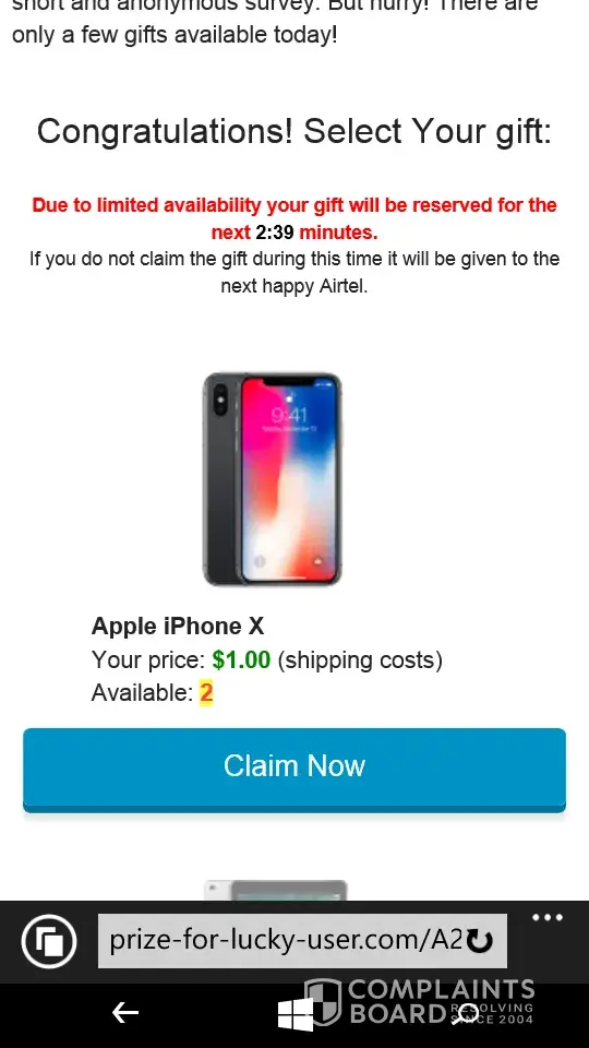 I received a message about winning iPhone x . When I opened that page it said to submitt 1 dollar to get iPhone x
