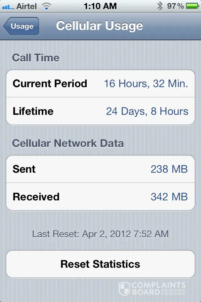 5. on 24 mar 12 at 12.48 pm I have received an sms from ad airtelmo that my gprs data usage is greater than 424 mb which is a part of your total available free data usage. subsequently the same massage from same source was received on 28 mar 12 stating my gprs data usage is more than 707 mb.