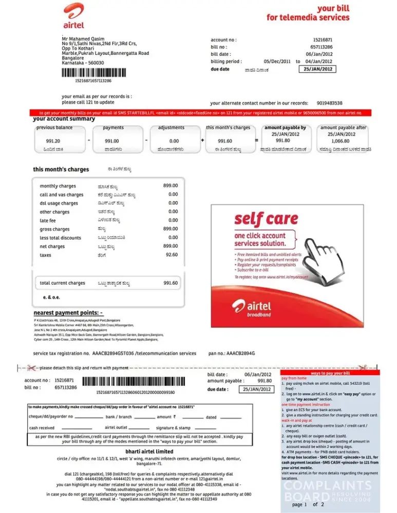 I had an airtel broadband with fixed line connection [protected] which i closed. The entire dues pending was paid and the full and final settlement letter was issued by airtel signed by the executive. Now im getting an lok adalat notice for not having paid the same. This is harrassment of the public. Its unfortunate that ive got a corporate connection also in airtel which i will now also deactivate. I m also thinking of filing in consumer court against airtel for mental anguish. If airtel is taking note of this. Pls call me at +[protected] or mail me at [protected]@yahoo.co.in