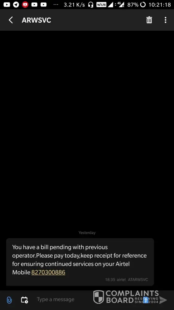 I am currently an Airtel customer and I am getting numerous calls and messages saying that I have bills pending from my previous operator, but before porting I have already paid my outstanding, but such cheap services from Airtel that they are not ready to help me, they only want to add new customers but are not willing to take care of the existing customers, it's a shame when Airtel claims they are no. 1, it's better to port out from Airtel when they can't help us.
