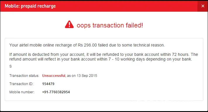 I recharged a wrong number with ₹153 inspite of mine. Then I asked airtel to do something in this regard but they refused. So I request airtel to refund my money. My number - [protected] wrong number which I recharged-[protected] amount - 153 date of recharge - 16.10.15. I recharged through freecharge.com and mailed them as well in response they said that they can't do anything in this regard its only up to airtel. So please help me out.