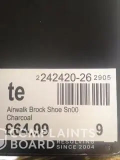 My husband has bought many Airwalk shoes in the past. However the pair we purchased from Sports Direct in the UK have been worn very infrequently, were purchased less than six months ago, and have already fallen apart.