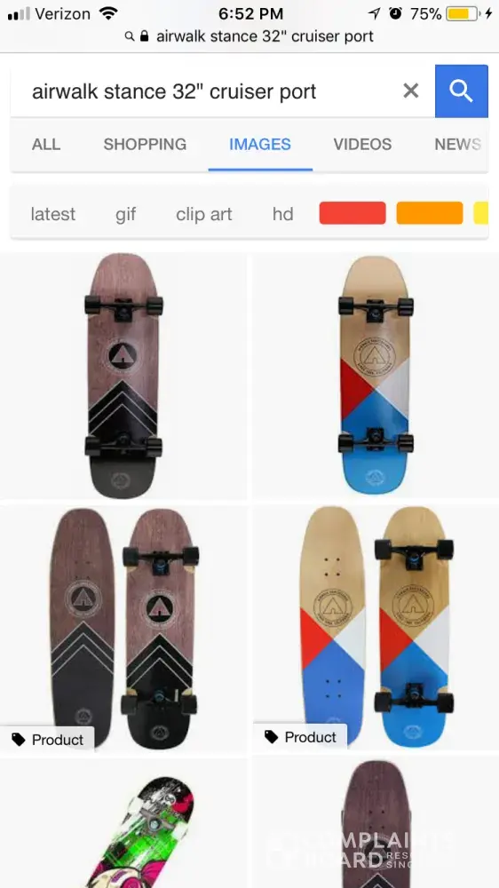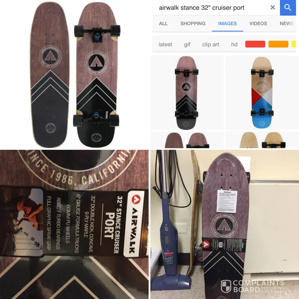 I recently purchased a skateboard from airwalk (32†stance series cruiser port) through dick’s, and the skateboard I received was a different one than pictured. I looked up the name of the skateboard on google images, various websites, etc. And the only picture I could find was of the skateboard I was expecting. Clearly this isn’t any store’s fault, but airwalk itself. This is false advertising