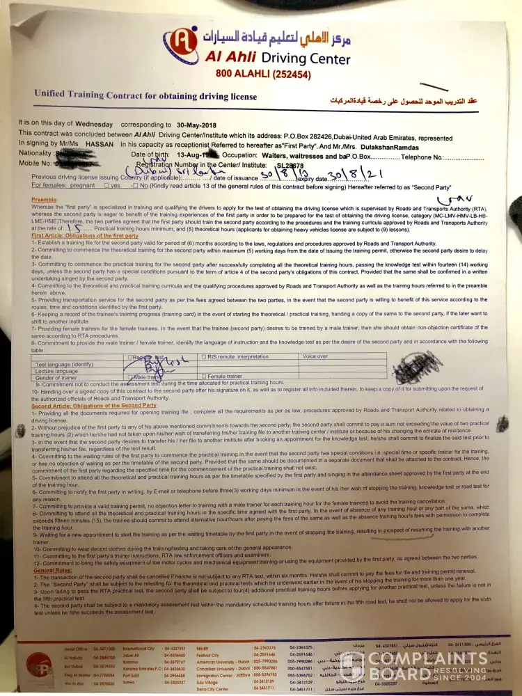 Read full complaint and 19 commentsal ahli driving school-ways of extracting money