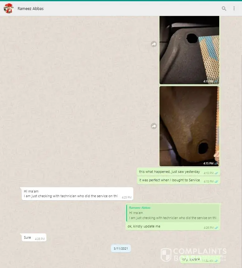 Toyota Rush S-80712 under warranty given to Al Badia Service centre since 19.4.21 still no proper response