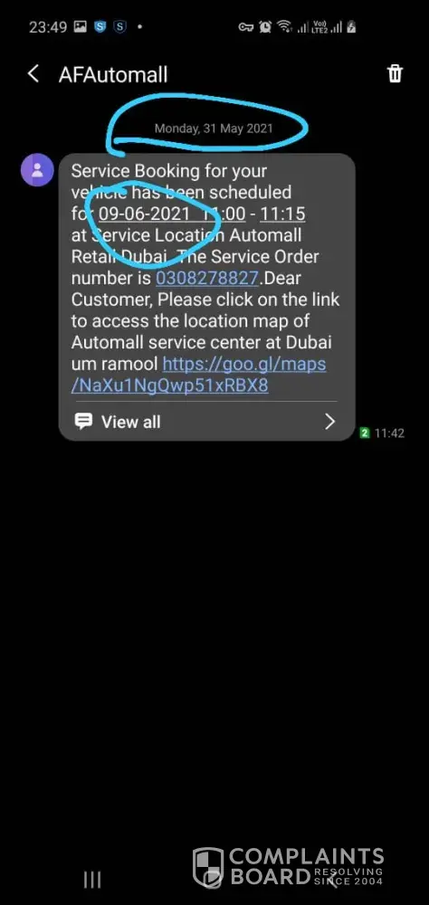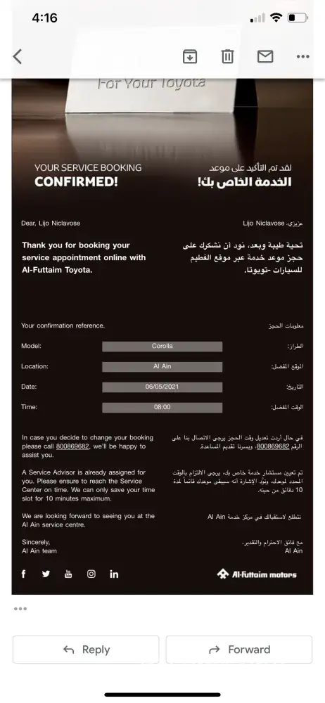 I have given my vehicle to Alfutaim Center for service. I got an appointment Today Morning 08:00 am (06/05/2021).