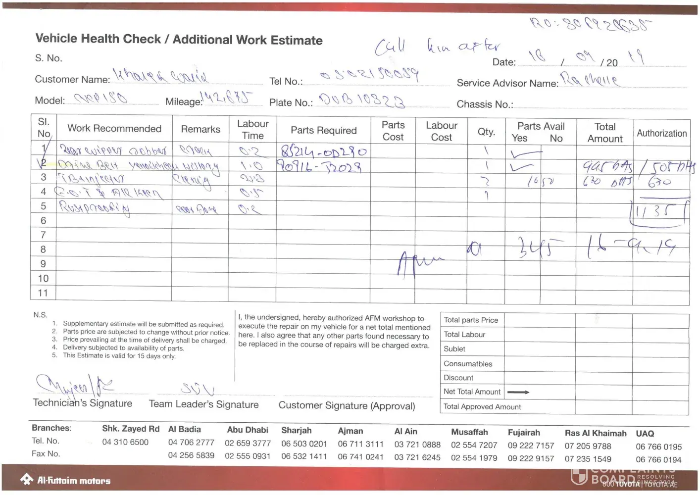 I Sachin Yedve mobile no. +971 556388446car plate number D14381 always service my Toyota Corolla from official service center as I had faith in their integrity.