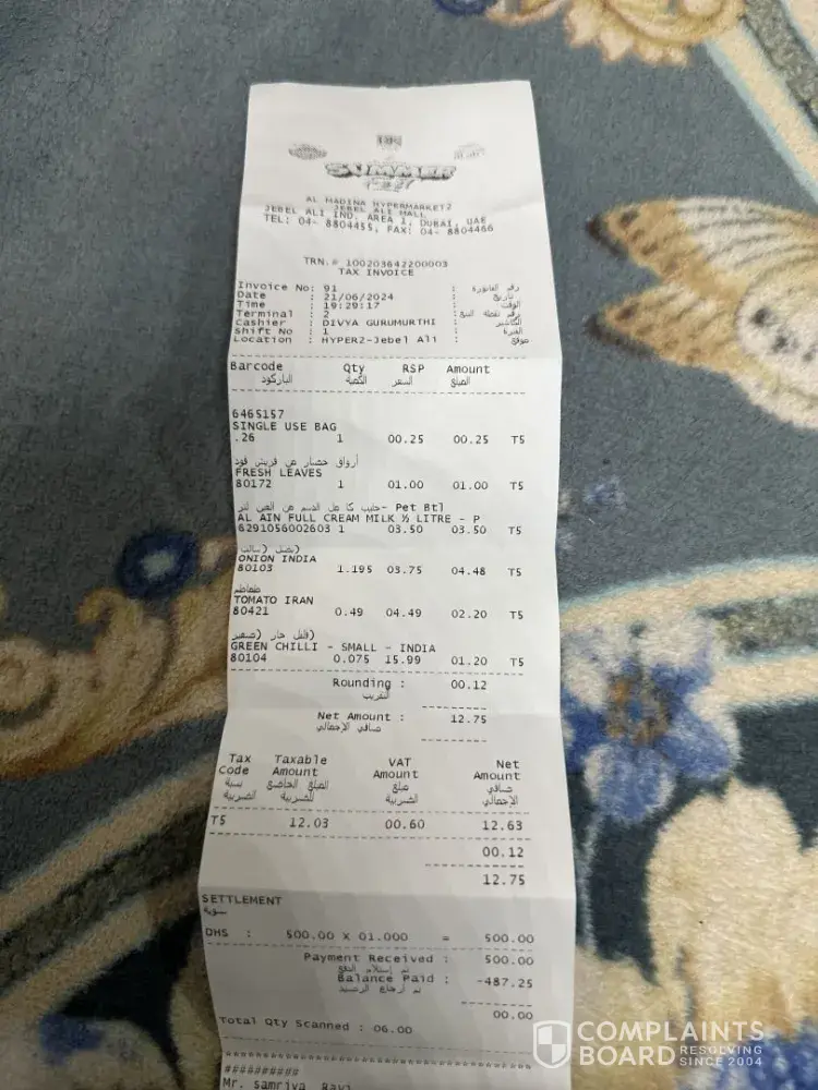 As long-standing residents of the UAE for over 10 years and loyal customers of Madina Hypermarket, we have always appreciated the quality and service provided by your stores. However, we are disappointed to report a very unpleasant experience at your Al Madina Hypermarket branch located in the Pearl Tower building, Ajman.