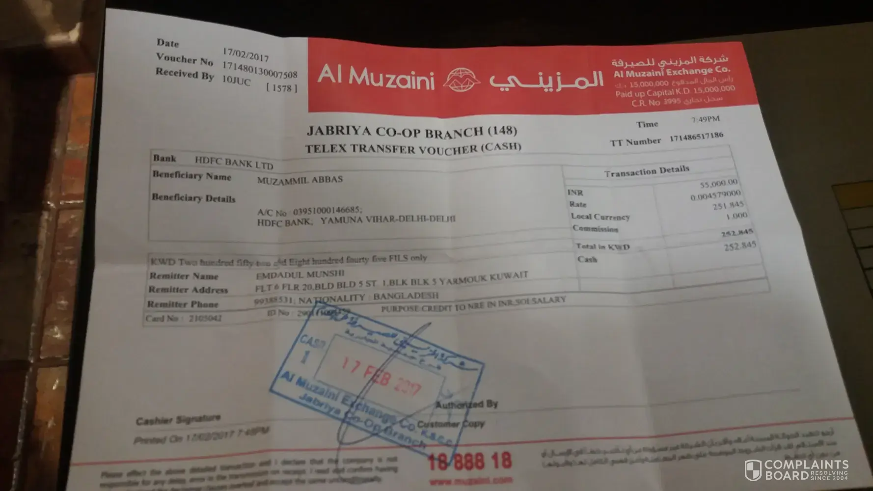 Al Muzaini Exchange Co.’s earns a 1.0-star rating from 0 reviews and 5 complaints, showing that the majority of customers are dissatisfied with currency exchange services.
