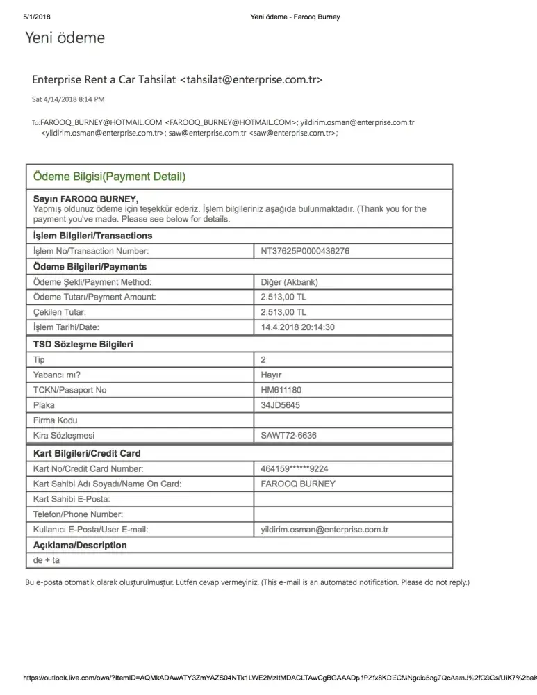 I returned the rented vehicle on the due date April 19, 2018 at Sabiha Airport, Istanbul Turkey. Thereafter Alamo- Enterprise is charging my credit card on a daily basis. So far there have been over 7 unauthorized transactions by Alamo. I have tried reaching the office multiple times but no response. I have had to cancel my credit card. Utterly unprofessional and unethical practice on part of your company. I I am attaching my bank statement and original invoice to include the the security deposit. I expect a full reimbursement, and compensation for all the trouble ASAP.