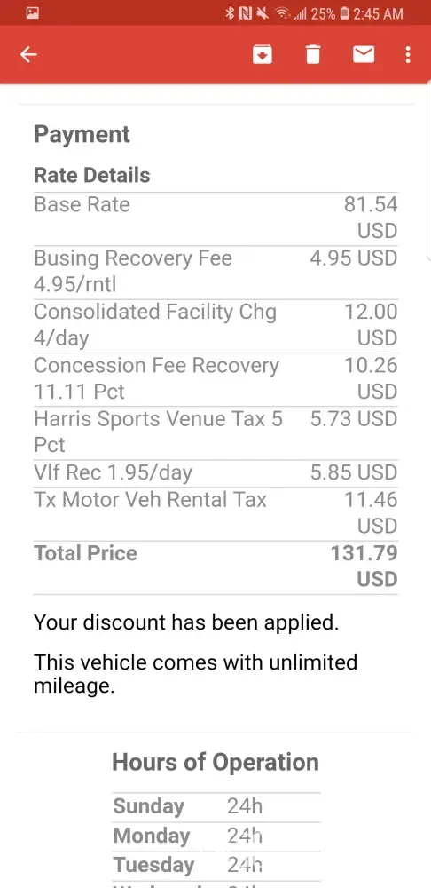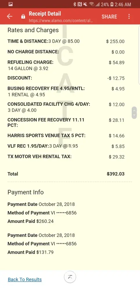 I forgot to mention that once I dropped the vehicle off the agent gave me a receipt of about 186, which also was a massive surprise to only see it be 260 a couple minutes later as I'm running to security and then my terminal. What in the world is this company doing.