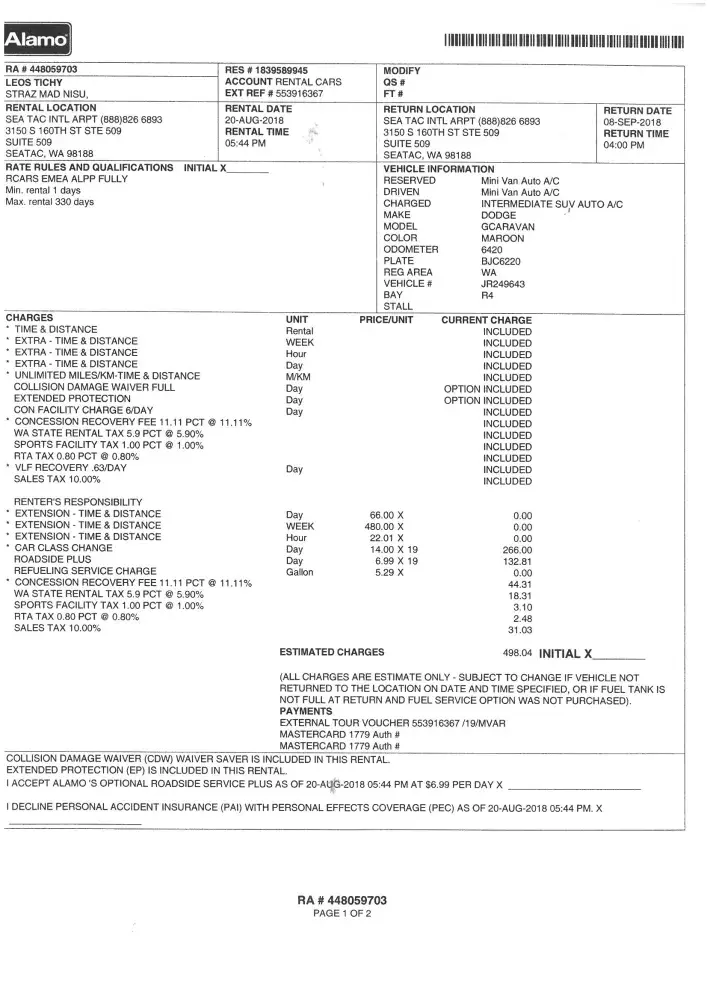 I attached your receipts and Booking Confirmation of Rentalcars where you can see that we paid all rent fees in advance.